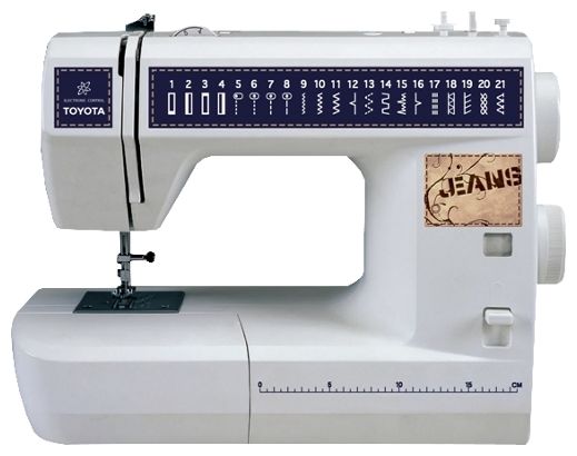 Новая модель швейной машины серии Jeans. Обновление популярной швейной машинки Toyota JS 121 Jeans. Набор из 21 швейной операции данной модели позволит Вам создать изделие любой сложности в домашних условиях. Особенность серии Jeans - легкое шитье грубых тканей в несколько слоев, для этого швейная машинка оснащена электронным контролем усилия прокола иглы. Усиленная прямая строчка для создания особо прочного шва. Обработка края тканей.