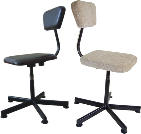 Стул производственный, для швеи, слесарей, монтажников используется на швейных и др. промышленных предприятиях. Каркас сидения установлен на пятилучевую опору. В опору установлен винт, позволяющий опускать и поднимать стул по высоте и вращать его вокруг вертикальной оси. Стул рабочий регулируется по глубине посадки, имеет мягкое сиденье и спинку, обтянутые искусственной кожей или тканью.