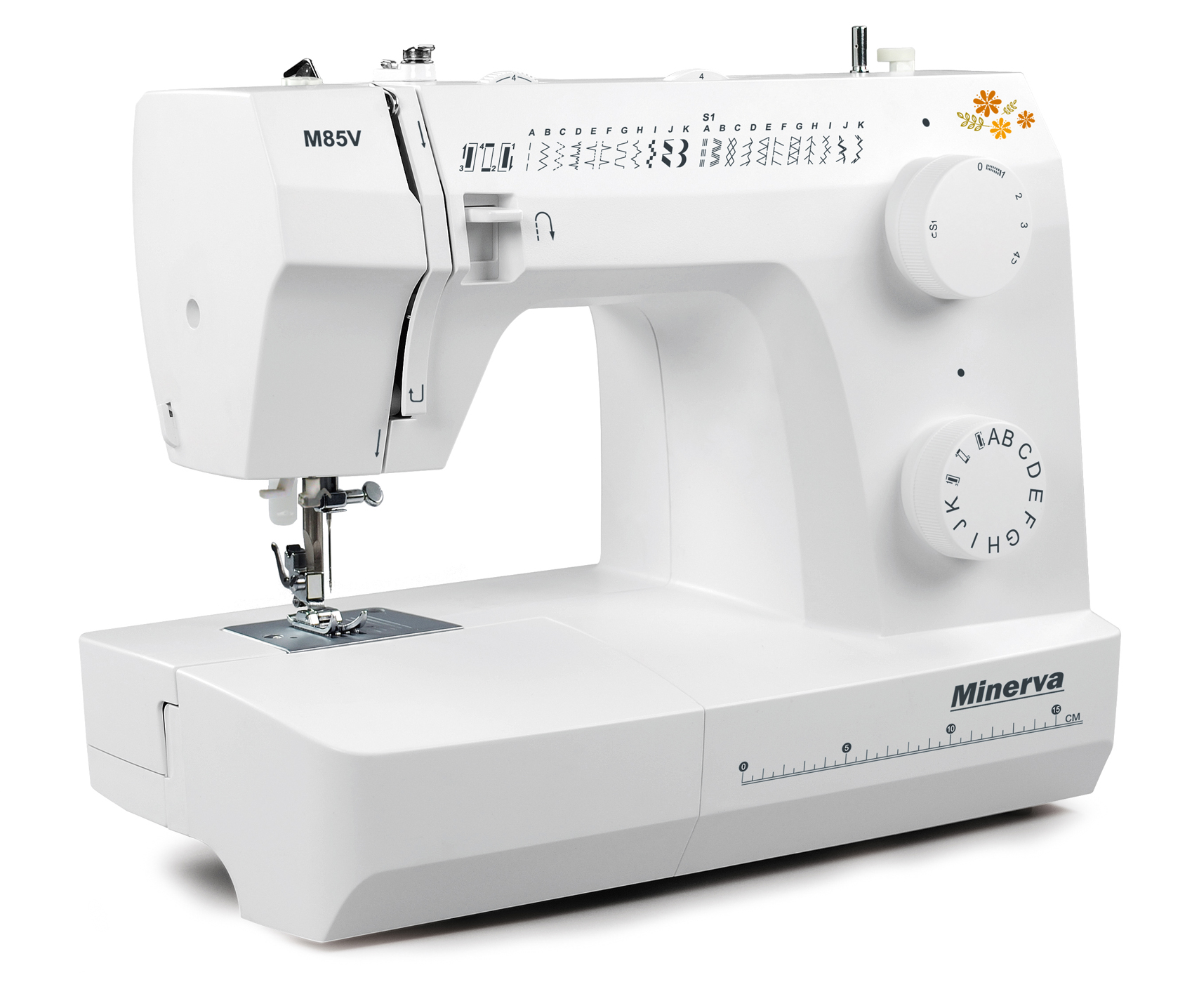 Швейная машинка Minerva M85V разработана с учетом максимального комфорта для пользователя, сохранив при этом доступную цену. Машина оснащена вертикальным челночным устройством, системой автоматической заправки нити, нитеобрезчиком, подсветкой рабочей поверхности. На передней панели машины расположены удобные переключатели выбора строчек, а также нанесена линейка, с помощью которой можно быстро отмерить небольшую ткань.