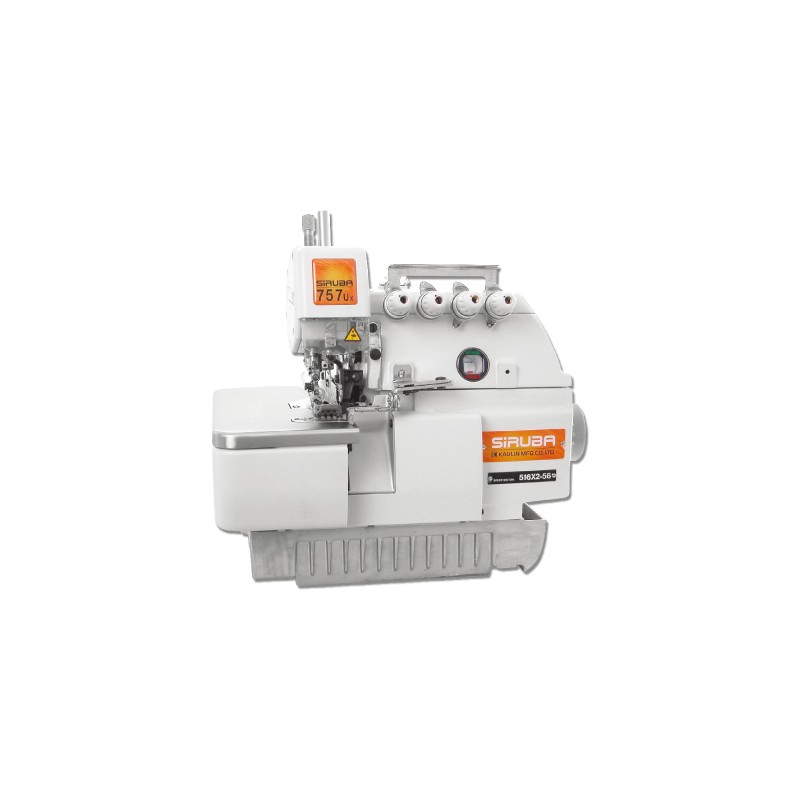 Siruba 757UX-516Х2-56 - 5 нит. оверлок для тяжелых материалов (джинс, раб.одежда), расст. между иглами 5 мм, обметка 6мм, длина стежка до 5мм, дифференциал 0,7-1,4мм, подъем лапки 6,0мм, скорость 7000 об/мин.