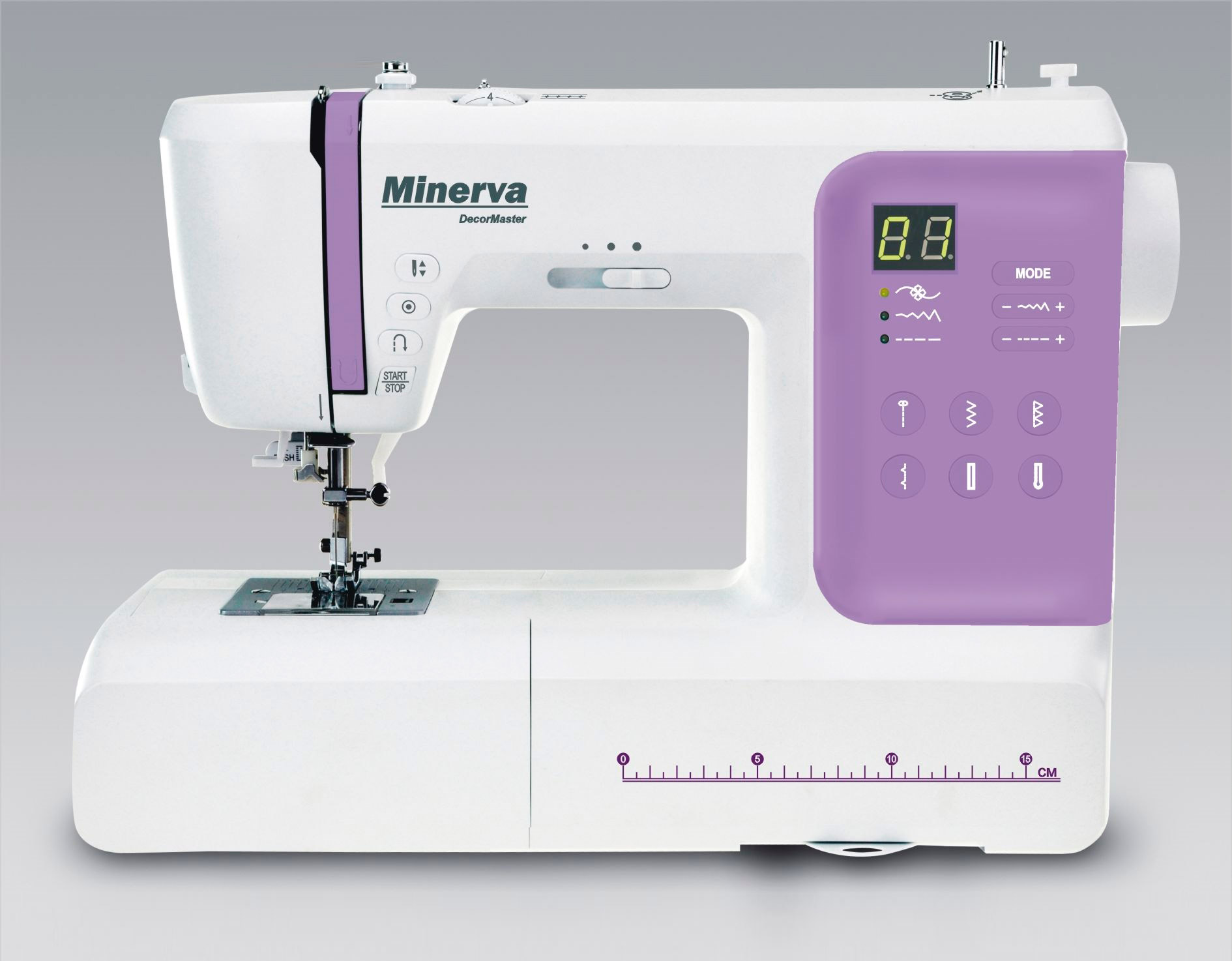 Сочетает в себе высокое качество бренда Minerva и лояльную стоимость. Minerva DecorMaster - это швейная машина со компъютерным управлением, благодаря чему в арсенале этой швейной машины имеется около 80 швейных операций. Крооме основных строчек имеется множество декоративных, подшивочных, оверлочных, потайная подшивка низа и другие. Большое количество декоративных строчек позволит украсить и сделать неповторимыми ваши вещи. Minerva DecorMaster с LED - дисплеем имеет простую панель управления, и с помощью подробной инструкции каждый сможет настроить ее на выполнение нужных операций. Длина и ширина строчек регулируються плавно до 4,5 мм и 7 мм соответственно. В наборе имеется 5 петельных шва и одна глазковая петля.