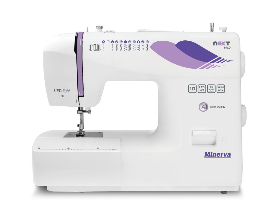 Minerva NEXT 141D - новинка в сфере электромеханических швейных машин. Отличный выбор, как для начинающих мастериц, так и для опытных. Хорошо подойдет, как для починки, так и для пошива изделий. Модель выполняет 14 базовых рабочих операций (рабочая строчка, оверлочная, зигзагообразная, эластичная строчка для трикотажа и другие).