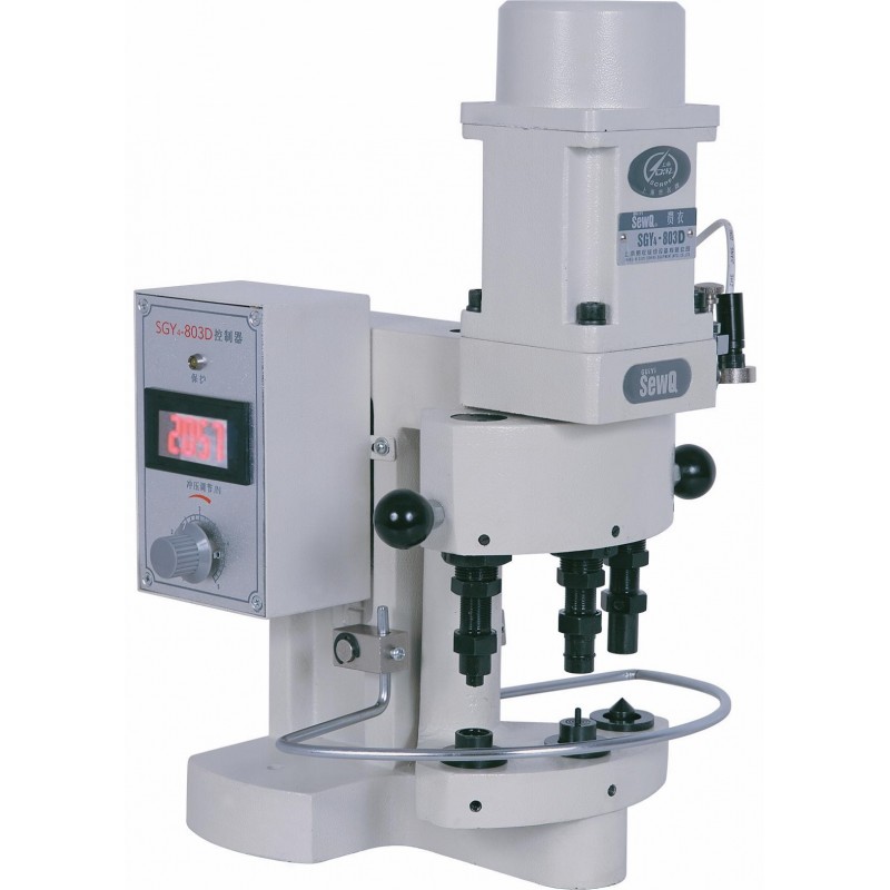 Трехпозиционный пневматический пресс для установки фурнитуры различных видов и размеров. Оснащен лазерной указкой, системой безопасности рук работающего.